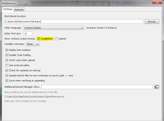 Lokasi File hex akan muncul setiap kali anda mengCompile Sketch. Seperti gambar dibawah ini :