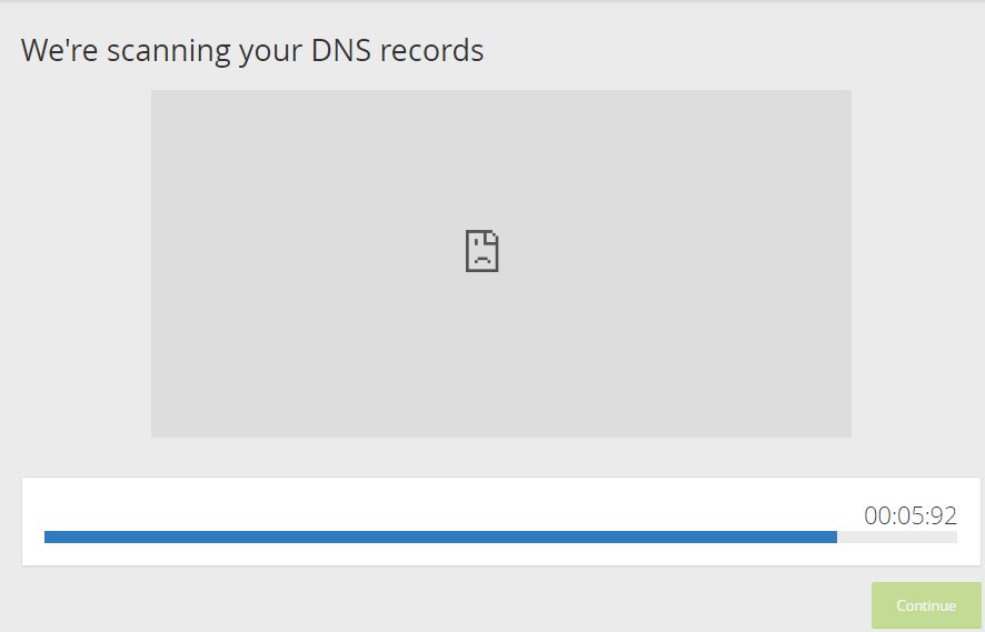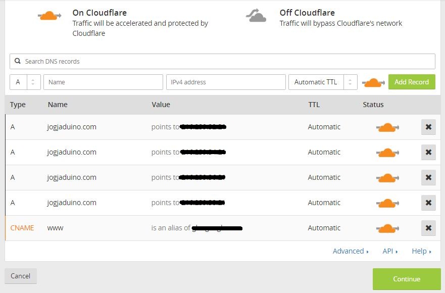 3. nah sampai proses ini cloudflare akan menscan alamat dns kalain, tunggu sampai selesai lalu klik “Continue”