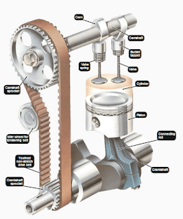 Katup yang berfungsi mengontrol campuran bahan bakar dengan udara masuk ke dalam silinder adalah inlet valve / katup masuk dan katup yang berfungsi mengontrol gas has hasil pembakaran keluar dari dalam silinder adalah exhaust valve / katup masuk. ke dua katup dirancang untuk membuka dan menutup pada saat-saat yang tepat, agar mesin bekerja dengan efisien di semua RPM ( Rotation per Minute ). proses itu dikontrol oleh camshaft yang berputar, camshaft berputar 1/2 dari putaran Crankshaft, media perantaranya ada yang berupa satu set roda gigi dari crankshaft atau rantai (chain ) yang biasa disebut ( Oherhead Valve ) dan ada yang mengunakan sabuk ( belt ) yang biasa dikenal dengan (Overhead Camshaft). tapi sekarang ada juga (Overhead Camshaft) yang menggunakan rantai sebagai media perantaranya.