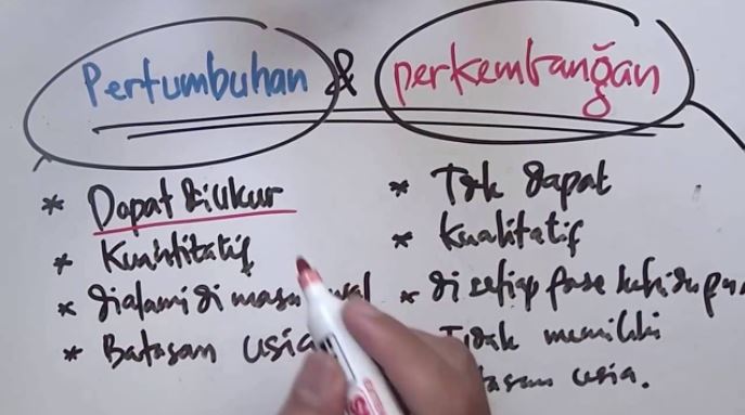 Perkembangan (Development) adalah suatu proses perubahan ke arah kedewasaan atau pematangan yang bersifat KUALITATIF (ditekankan pada segi fungsional) akibat adanya proses pertumbuhan materill dan hasil belajar dan biasanya tidak dapat diukur.