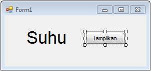 Ganti Text “Label 1” dengan kata “Suhu” dan “Button 1” dengan kata “Tampilkan”, anda dapat menggantinya di bagian Properties > Text, untuk menampikan Properties Windows dapat melalui Menu View > Properties Windows, atau dengan menekan tombol F4.